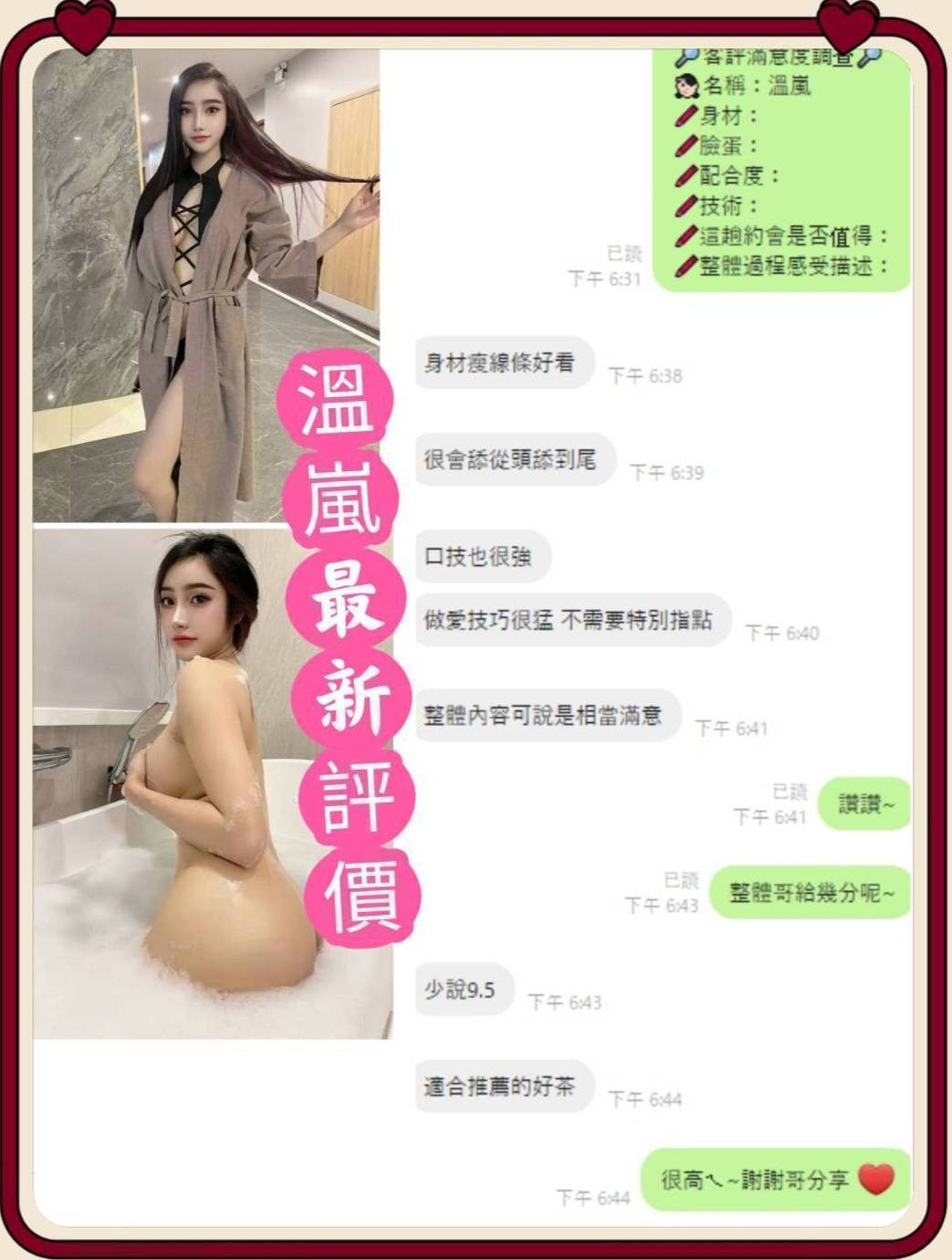 甜蜜共浴/殘廢澡/無套吹/舌吻/品鮑/69/按摩/奶炮/乳交/吞蛋舔睪丸/舒麻舌功..……